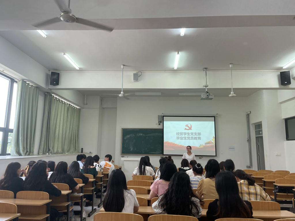 为加强毕业生党员教育管理,充分发挥党员先锋模范作用,5月24日,财经学院经贸学生党支部在致知楼C109召开2021届毕业生党员大会。学生党支部全体毕业生党员参加会议,会议由支部书记王天云主持。