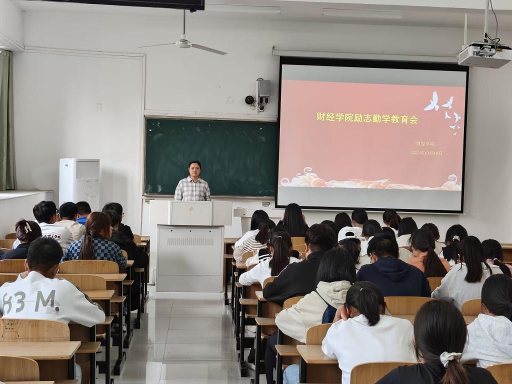 为进一步推进财经学院学风建设年活动,激励受资助学生克服困难、勤奋学习,发挥资助育人成效,10月18日,财经学院在致知楼C108开展受资助学生励志勤学教育大会。学院党政领导和2023级全体受资助学生参加了会议。会议由专职辅导员宣晶晶主持。