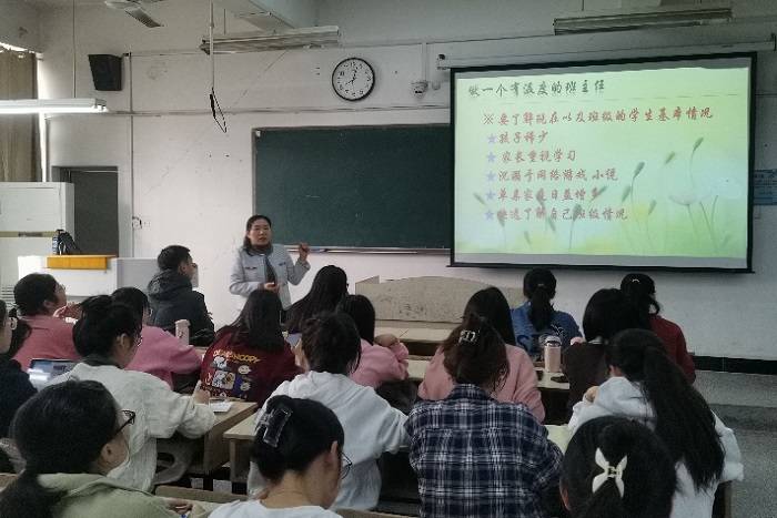 刘宏伟以教育教学问题为导向,以“做一个有温度的班主任”为主题进行了精彩的讲座。刘老师首先强调了做一个有温度的班主任的重要性,然后从爱心、耐心、责任心、公平心四个方面结合实例细致阐述了如何做一名好老师、如何成为有温度的班主任,如何在教育教学过程中发挥教师的主导作用和学生的主体作用。讲座内容由浅入深,层层递进,值得深思。最后她希望同学们在以后的工作中能够以身作则,学会与学生沟通、与家长沟通,不断精进业务,提升教育教学能力。