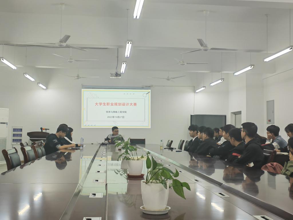 为引导大学生树立正确的成才观、就业观和择业观,科学合理规划学业与职业发展,提升就业竞争力,10月27日下午,信息与网络工程学院在尚行楼B418会议室举办大学生职业规划设计大赛。学院专职辅导员和学生会主要负责人担任评委,大赛由专职辅导员李军成主持。