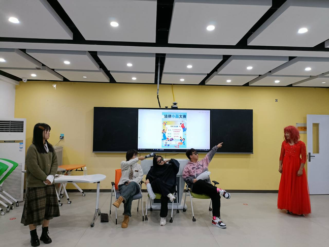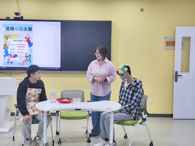 为宣传法律知识,弘扬法治精神,增强广大同学尊法、学法、知法、守法观念,10月31日,人文学院在学知楼B301举办法律小品大赛。共十组参赛队伍,精彩演绎,欢乐纷呈。人文学院专职辅导员现场观看比赛。