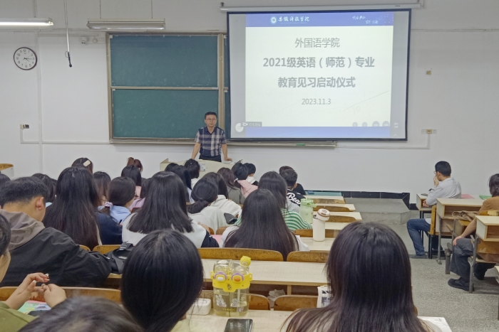 为确保外国语学院2021级英语(师范)专业学生教育见习工作顺利开展,11月3日下午,外国语学院在求知楼A101教室举行2021级英语(师范)专业教育见习启动大会。2021级英语(师范)专业全体同学参加本次会议。外国语学院党政领导和有关教师出席会议,会议由英语教研室副主任吴远青主持。