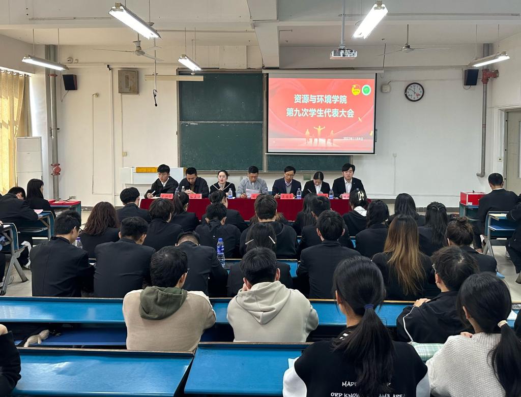 11月8日中午,资源与环境学院在新知楼A108召开第九次学生代表大会。学院党政领导、有关教师和学生会主席团成员出席会议,全体学生代表参加本次会议,会议由学院学生会指导老师王丽萍主持。