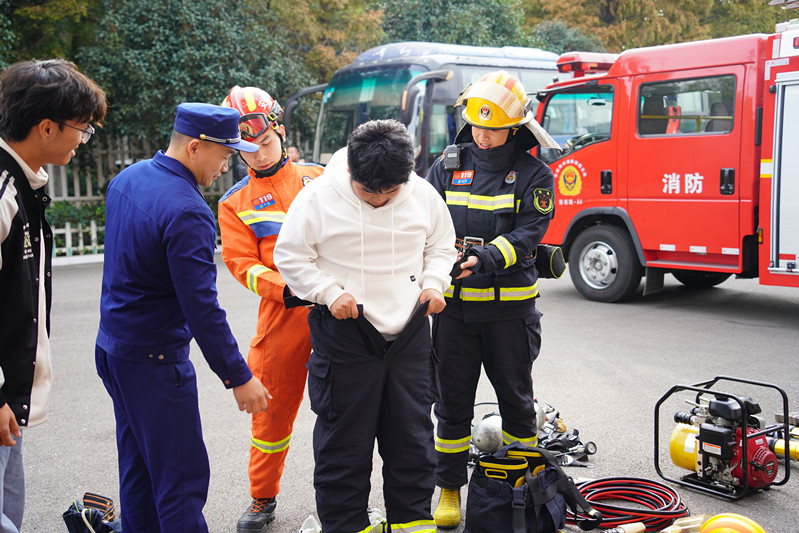 通过此次消防安全见习活动,增强了同学们消防安全意识,亲身体验了各类消防安全救援设备,加深了对消防安全救援设备认识,感受到消防救援人员工作的不易,同时加强了校地双方的交流与互动,为双方进一步合作打下良好基础。(特约通讯员:徐建科 摄影:王婉兴 审核:余德锋 编辑:李锦)