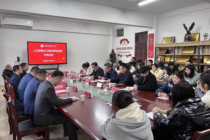 11月17日下午,人文学院2023级法学“世远班”开班典仪式在学知楼324举行。出席开班典礼的有安徽世远律师事务所主任陈银钱等一行6人,人文学院党政领导、有关教师及“世远班”全体同学。开班仪式由正处级组织员张严政主持。