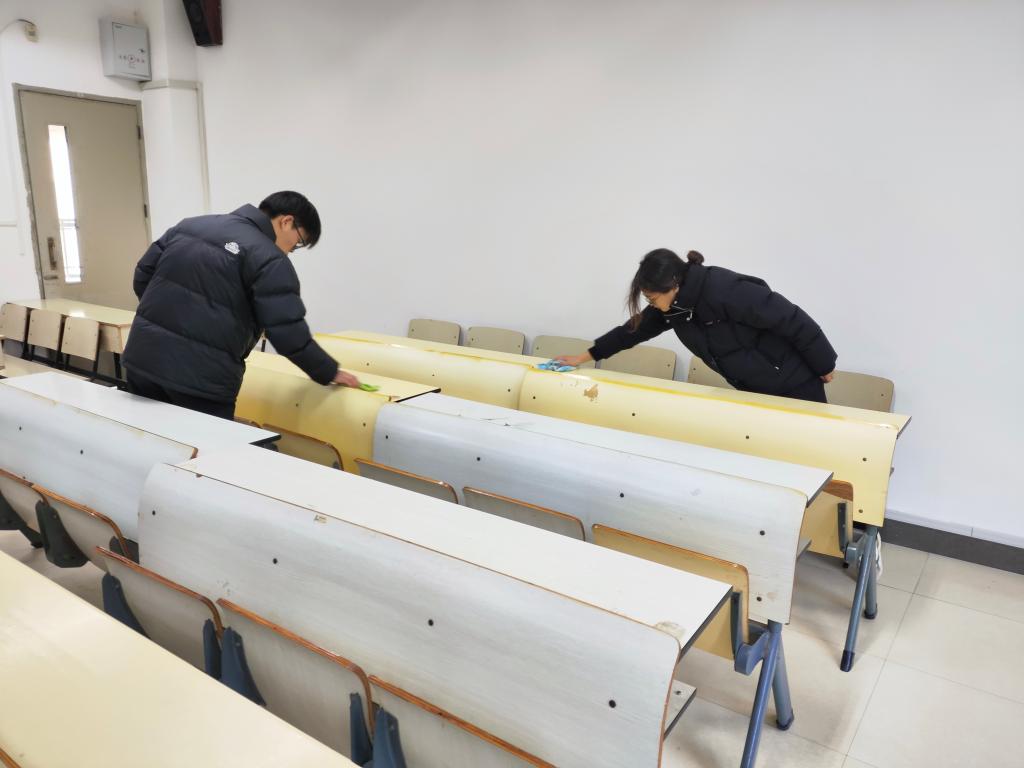 为营造良好的上课环境及创建文明校园,同时培养大学生爱护校园环境,从我做起、从小做起的风貌。11月25日农学院组织学院第59期入党积极分子分别深入新知楼AB等教学楼开展了“我为同学做实事”清洁教学楼活动。农学院辅导员吴荡到场指导。