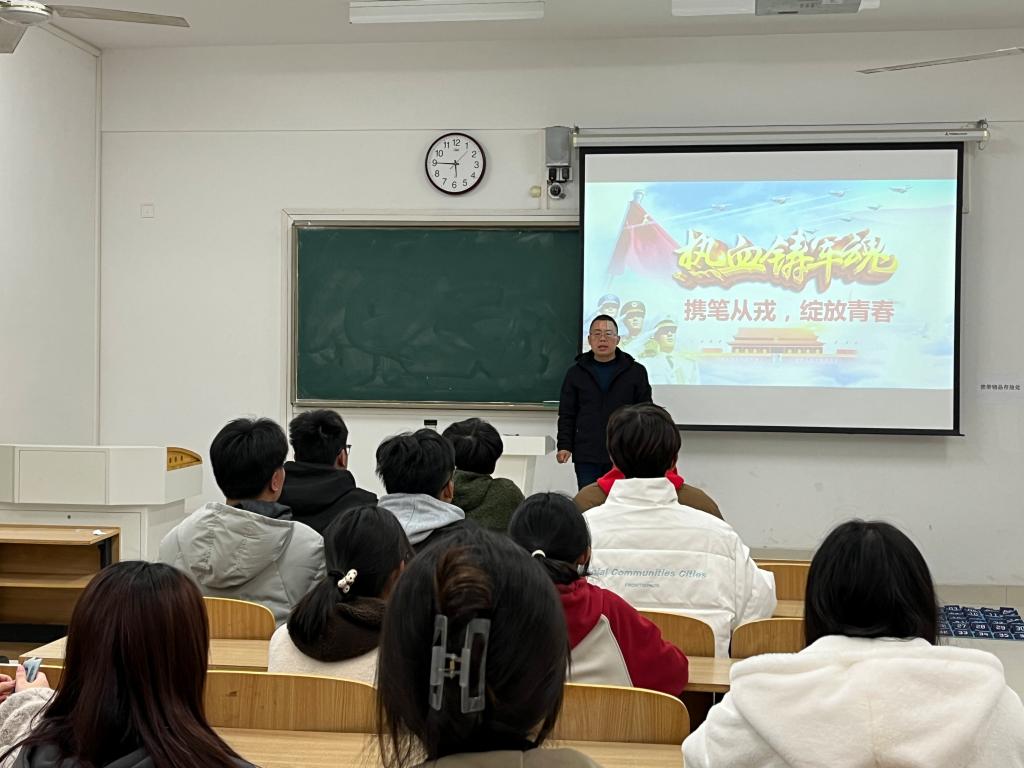 会上,辅导员介绍了学院征兵工作总体情况,重点讲解了大学生应征入伍的优待政策,享受优先征集入伍、国家资助学费、大学毕业生士兵可优先转士官或者提干、参军入伍政治经济待遇等政策,这些政策充分表明党和国家对大学生征兵工作的重视;辅导员还介绍了退役大学生士兵学业优惠政策、退役大学生士兵安置和就业政策等,增加同学们对退役后学业和就业的信心。最后,辅导员鼓励大学生积极响应习近平总书记的号召,大学生到基层去、到边远地区去、到社区去、到农村去、到军营去,努力成长为堪当民族复兴重任的时代新人。