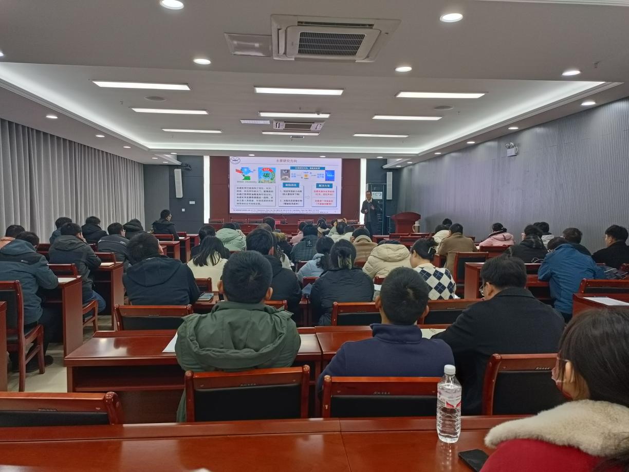 12月6日下午,安徽大学教授宣俊应邀为化学与材料工程学院师生作题为“可见光驱动卡宾转化:从张力环构建到多组分反应设计”的学术报告。学院党政领导、有关教师和部分本科生参加了学术报告会,报告会由副院长李子荣(主持工作)主持。