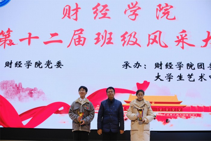 为进一步增强学院班级的凝聚力和向心力,促进班风学风,营造良好的校园文化氛围,12月2日下午,财经学院在龙湖校区东辅楼报告厅成功举办“永远跟党走,奋进新征程”第十二届班级风采大赛。学院党委书记杜小明、党委副书记耿广汉及学院全体专职辅导员出席。龙湖校区各学院学生会主席团成员应邀担任比赛评委。