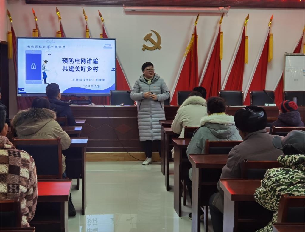 为深入开展“我为群众办实事”主题实践活动,进一步增强反电信网络诈骗宣传力度,助力美好乡村建设。12月12日上午,建筑学院城乡规划专业学生党支部深入乡村开展反电信网络诈骗主题党日活动,建筑学院党委副书记、支部党员谢宜勤主讲,凤阳县官塘镇凤龙社区、淮安村200余名村民参加。主题党日活动由城乡规划专业学生党支部书记武辉主持。