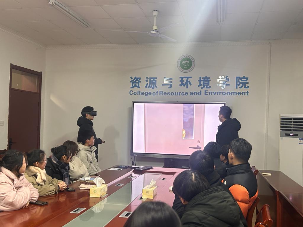 为增强大学生的安全意识,普及消防安全知识,12月21日晚上,资源与环境学院在东办公楼会议室开展VR沉浸式消防安全教育活动。学院有关教师和部分学生代表参加。