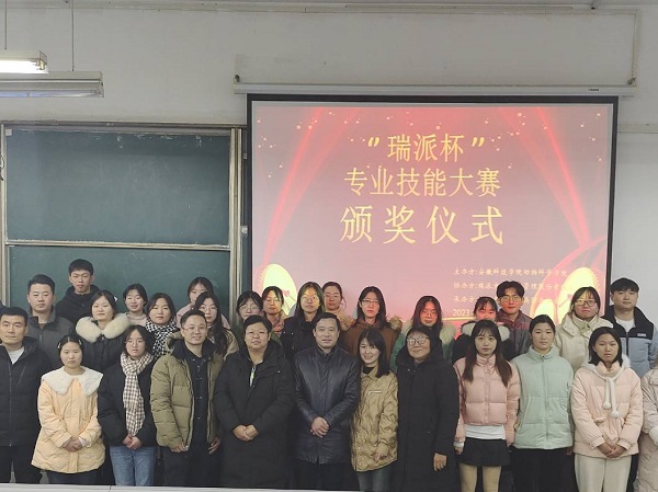 12月24日,动物科学学院在求知楼A106举行“瑞派杯”专业技能大赛颁奖典礼,此次竞赛由动物科学学院和瑞派宠物医院管理股份有限公司共同主办。动物科学学院党委书记、副院长程斌,瑞派镇江大西店院长宋火松,蚌埠瑞派欣宠宠物医院院长杨燕及学院有关教师出席典礼。