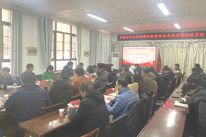 12月22日,食品工程学院食品营养与安全系教工党支部在凤阳校区举办了“安徽省食品添加剂和配料协会走进半岛app官方在线入口”活动。食品工程学院党委书记付光玺,院长杜传来应邀出席。会议由协会秘书长杨文明主持。