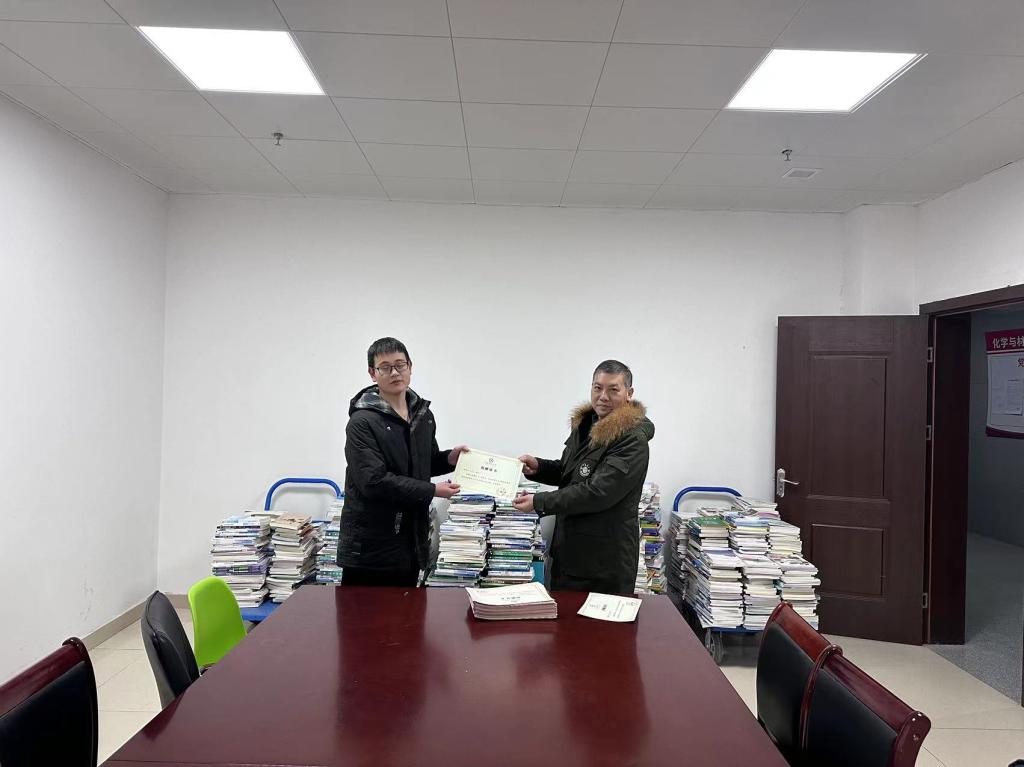 为响应学校“爱心传递,知识共享、循环使用、绿色校园”的捐书倡议,丰富我校图书馆馆藏资源和文化内涵,12月25日下午,化学与材料工程学院师生向校图书馆捐赠图书2000余册,学院书记黄树桥代表学院向图书馆转交了捐赠图书,捐书仪式在化学与材料工程学院会议室举行。