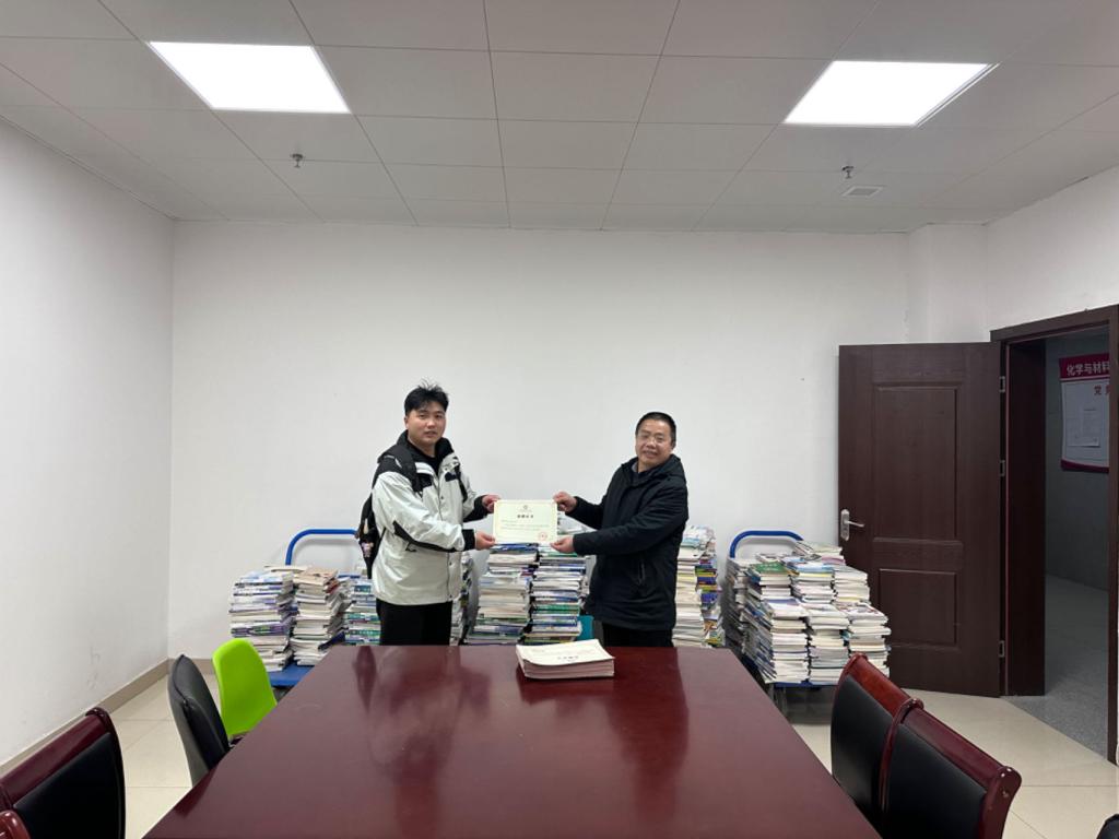化学与材料工程学院高度重视捐赠图书活动,积极发动师生捐赠。学院领导带头,师生积极响应,踊跃捐赠图书,短短几天时间内全院师生共捐赠图书两千余册。汪徐春和黄树桥给学院师生代表颁发了捐赠证书,并对大家为建设“绿色校园、爱心校园”所做的努力表示高度赞扬和感谢。