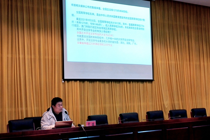 贾健围绕法学专业的开设现状、法学四年本科怎么学、法学专业的发展前景等问题进行讲授,就同学们关心关注的如何学好专业知识、更好的将法学理论和司法实践有机结合、搞好个人发展规划等问题,提供了很多思路和建议。他指出,法学专业学生要坚守正义,关注民生,体恤民情;不惧怕观点的争议;多读公认的专业好书。还为同学们详细分析了法律职业资格考试的发展趋势等内容,希望同学们认真学习专业知识,脚踏实地,不辜负自己的期望与努力。