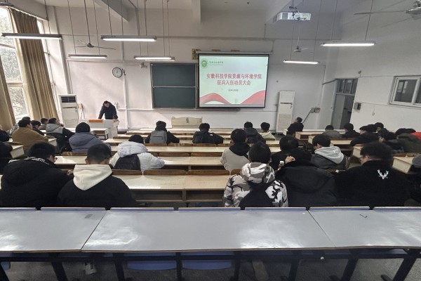 为了做好2024年春季征兵工作,营造浓厚参军入伍氛围,激发毕业生参军报国热情,12月29日中午,资源与环境学院在求知楼A104召开2024届毕业生征兵动员大会。资源与环境学院党政领导和有关教师出席,退役大学生代表滕星宇、南斌应邀参加,全体2024届毕业生男生参加会议,会议由专职辅导员孙正浩主持。