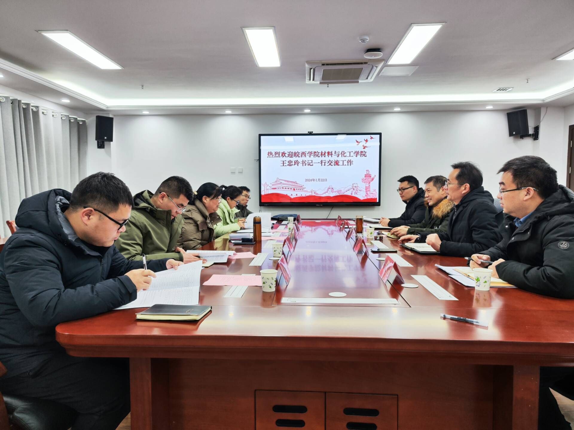 1月22日,皖西学院材料与化工学院党委书记王忠玲一行5人来学院考察交流。学院党委书记黄树桥,党委副书记、院长李子荣,副院长叶龙强及部分系主任陪同考察。