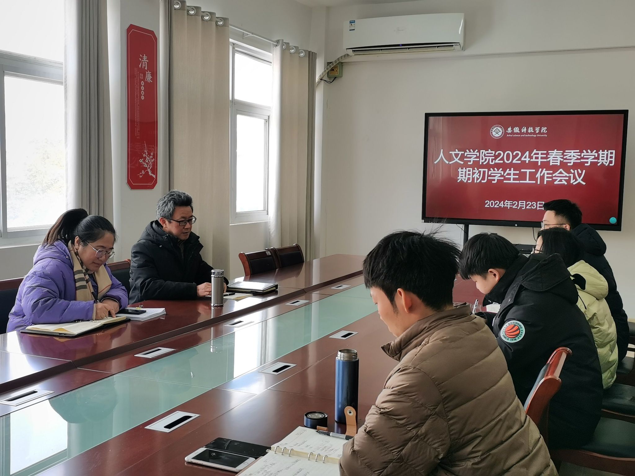 为深入谋划推进新学期各项工作,确保学生教育管理工作平稳有序开展,2月23日上午,人文学院在学知楼324会议室召开2024年春季学期期初学生工作会议,学院党政领导和全体辅导员参加。