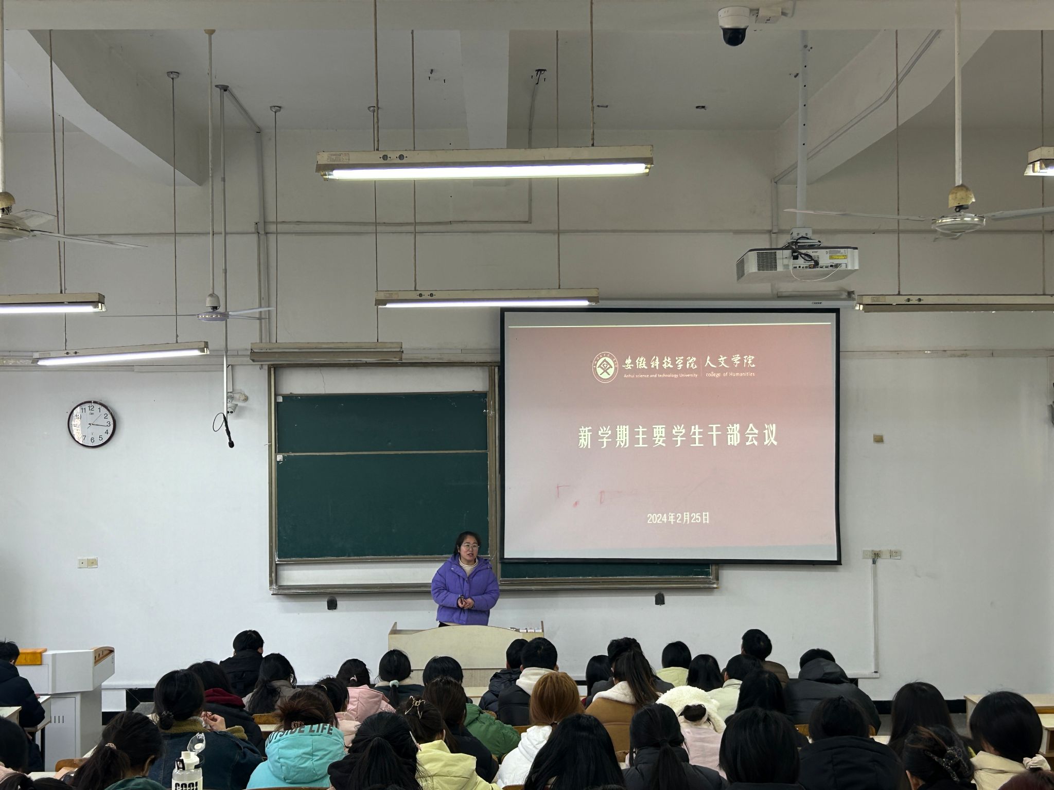 2月25日下午,人文学院在求知楼A107教室召开新学期主要学生干部工作会议。学院党政领导、全体辅导员及各班班长、团支书、学习委员参加。会议由学院团委副书记焦雪松主持。