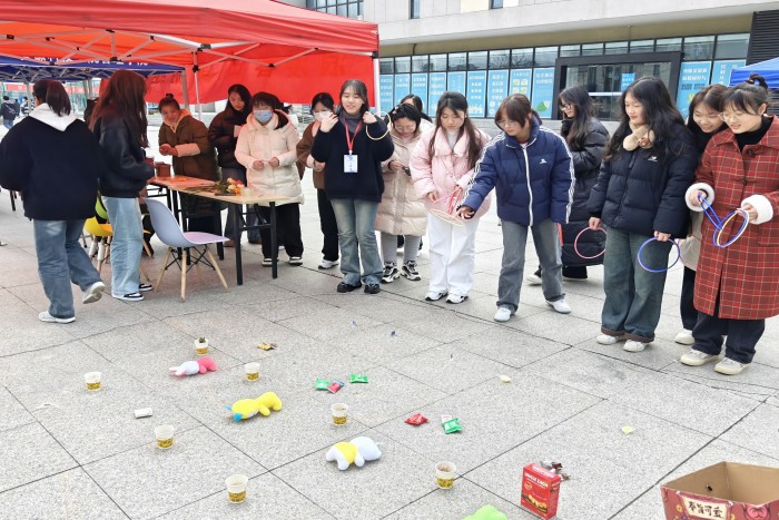 活动分别有“幸运女孩”抽奖、套圈游戏、心愿寄语、“穿山越海奔向你”、团队竞技大比拼等五项内容。比赛活动现场热闹非凡,充满欢声笑语,一篇朝气蓬勃景象。心愿墙上五颜六色的便利贴蹁跹起舞,承载着美好的祝福与心愿,传递了温暖的气息与情谊。