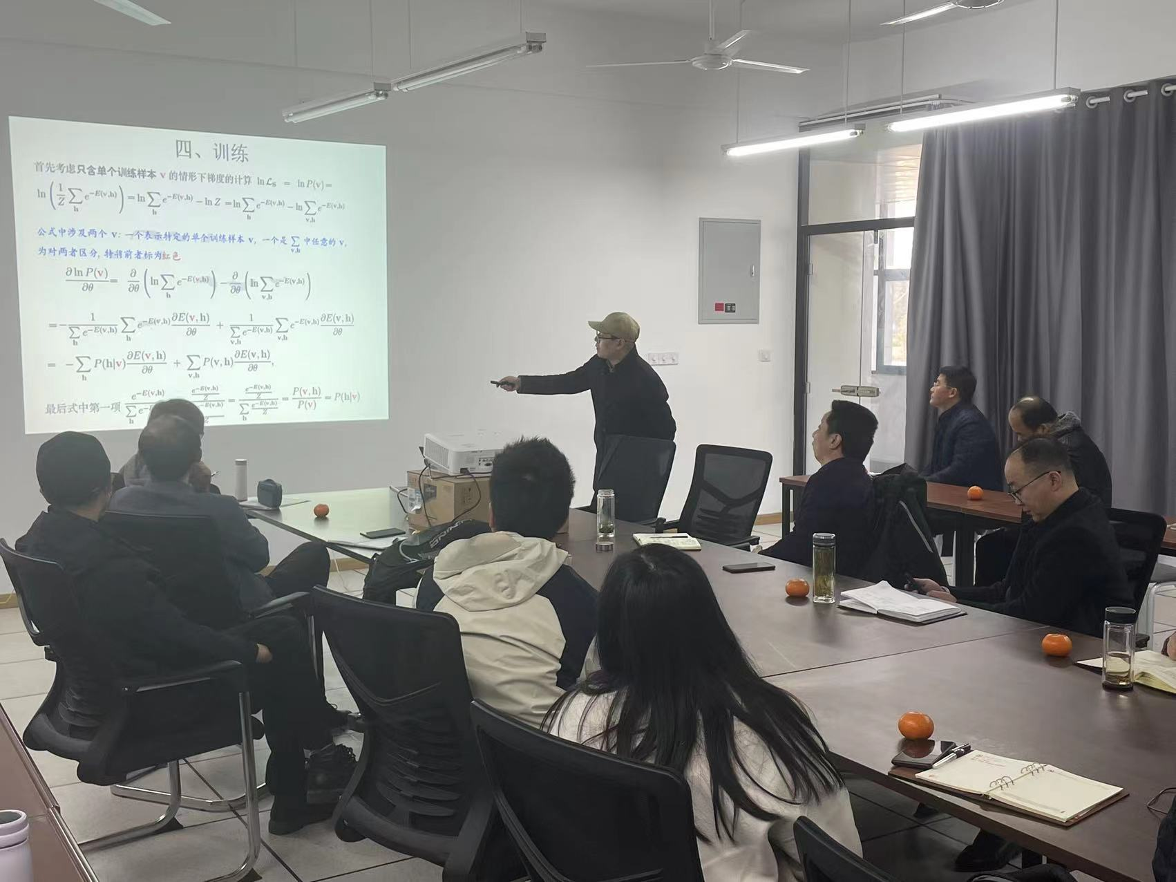 会上,教师陈小波作题为《受限玻尔兹曼机》的报告,详细阐述了玻尔兹曼机的发展历程、推导了相关理论结果,并通过实际例子进行了讲解。报告结束后,参会人员进行了广泛而深入的讨论。