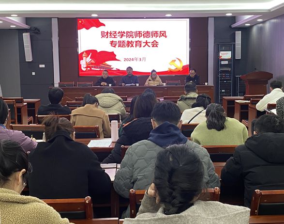 3月13日下午,财经学院在西附楼111会议室召开师德师风专题教育会议。学院领导班子成员和全体教师参加会议,会议由学院党委副书记、纪委书记耿广汉主持。