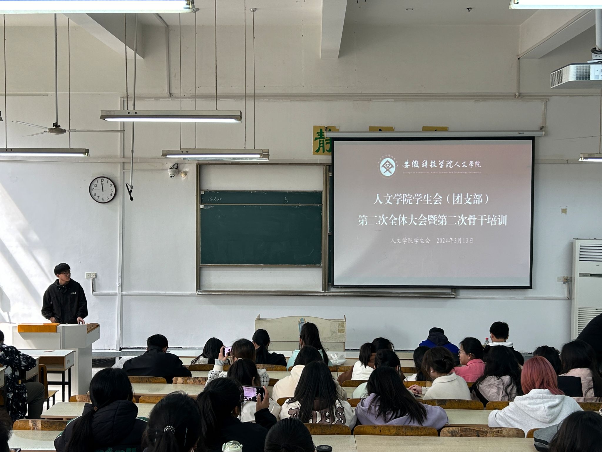 为更好地统筹规划新学期学生会工作安排,加强学生会自身建设,3月13日中午,人文学院在求知楼A104教室召开学生会全体大会暨骨干培训会。学院学生会指导老师徐琦琦、学生会主席团成员及全体工作人员参加,会议由主席团成员盛化明主持。