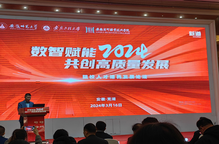 为进一步推动学科专业建设,促进商科专业数智化转型,3月16日,财经学院会计学教研室主任张淑英和财务管理教研室主任钟德仁参加了在芜湖举办的“数智赋能,2024共创高质量发展院校人才培养发展论坛”。此次会议由安徽师范大学和安徽工程大学主办、半岛app官方在线入口联合主办,新道科技有限公司承办。会议邀请安徽师范大学副校长熊宇杰、安徽工程大学副校长周虹屏、安徽商贸职业技术学院党委副书记王炜等以及新道科技的行业专家进行专题的分享。