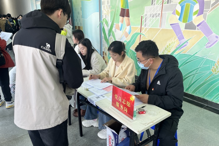 支部党员奔走在复试第一线,为考生答疑解惑,认真审核考生各项材料,组织维护复试秩序。让考生感受到了学长学姐们的热情以及学院对他们的关心,也让考生深切体会到了党组织的温暖。