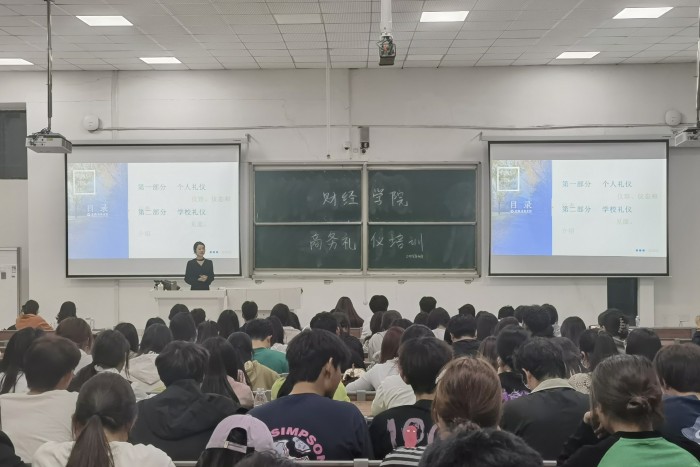 为进一步提升学生礼仪修养,彰显大学生文明风采,营造高尚、文明、和谐的校园礼仪环境,4月25日,财经学院邀请《现代商务礼仪》课程教师钱新悦在致知楼B111教室开展大学生商务礼仪培训。22级、23级全体学生干部,学生会全体成员参加会议。