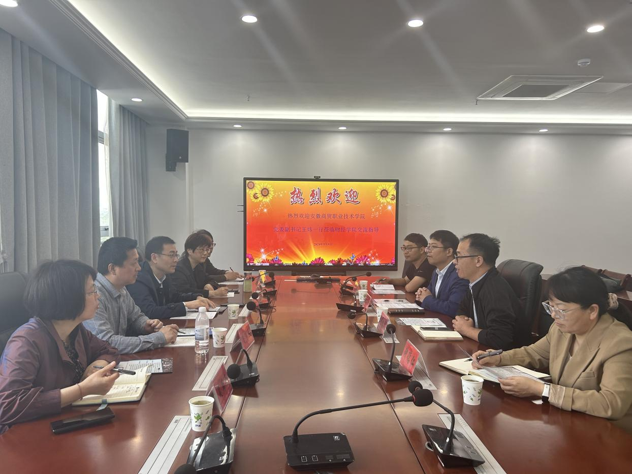 5月9日上午,安徽商贸职业技术学院党委副书记王炜等一行五人来校考察交流工作,财经学院党政领导、教研室、实验室主任等参加会议。会议由学院副院长李宝礼主持。