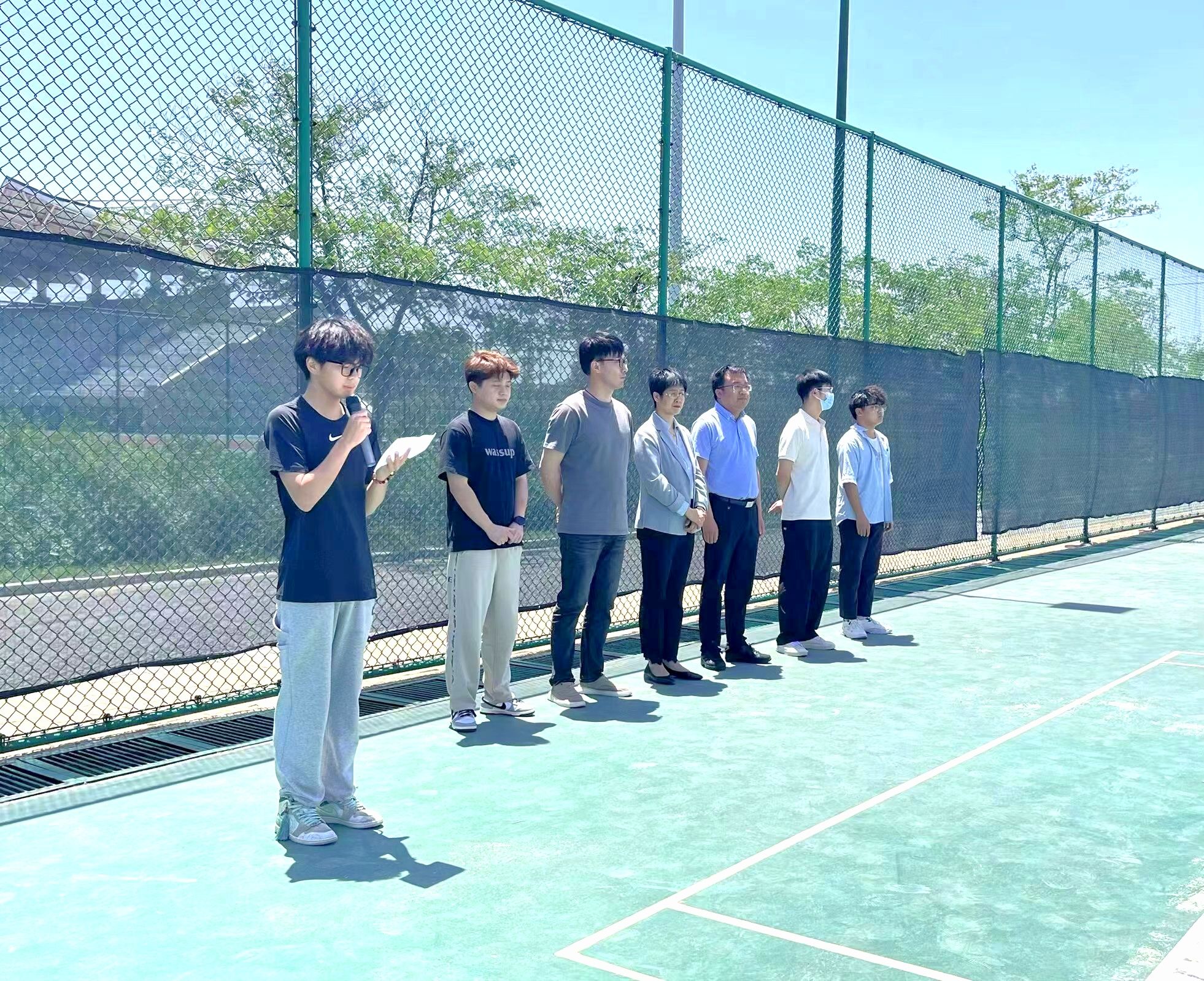 团委副书记江旭聪致辞,他表示,生命在于运动,体育改变生活。开展此次比赛是践行“绿色、健康、低碳、高雅”生活方式和发扬“更高、更快、更强、更团结”体育精神的生动体现。希望同学们以球会友,收获友谊、收获美好心情、收获健康体魄。