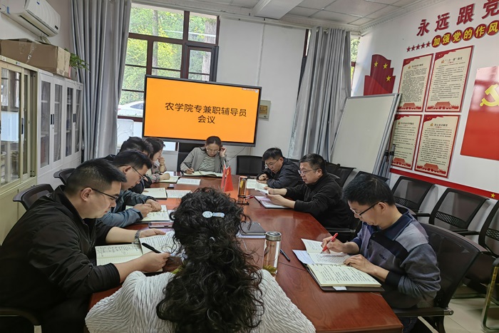 5月13日,农学院在东办公楼120召开全体专兼职辅导员工作会议,学院党委书记何世潮、各专兼职辅导员参加会议,会议由党委副书记张轶辉主持。