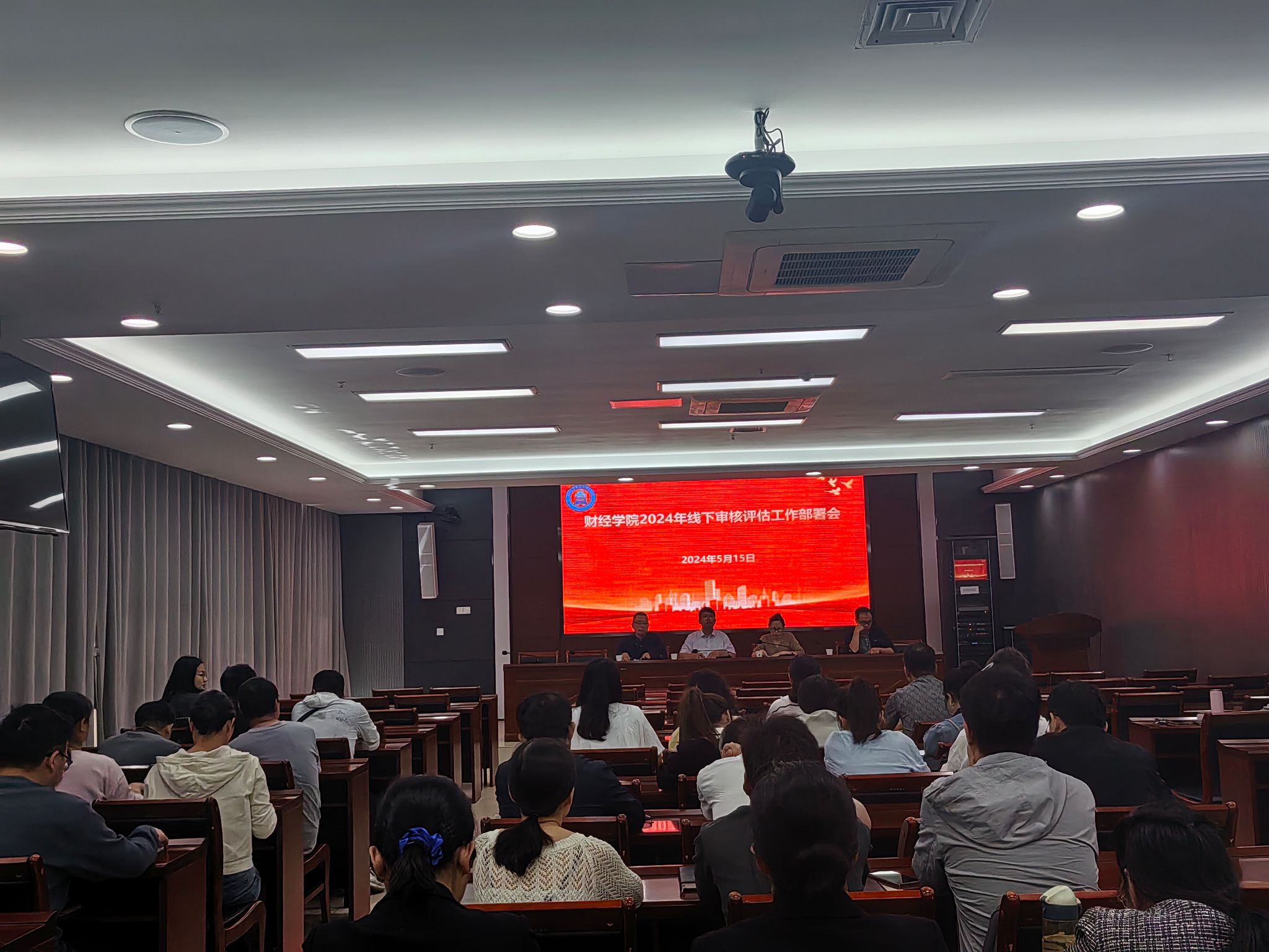 5月15日下午,财经学院在西辅楼111室召开2024年线下审核评估工作部署会。财经学院党政领导及全体教师参加,会议由学院党委副书记、纪委书记耿广汉主持。