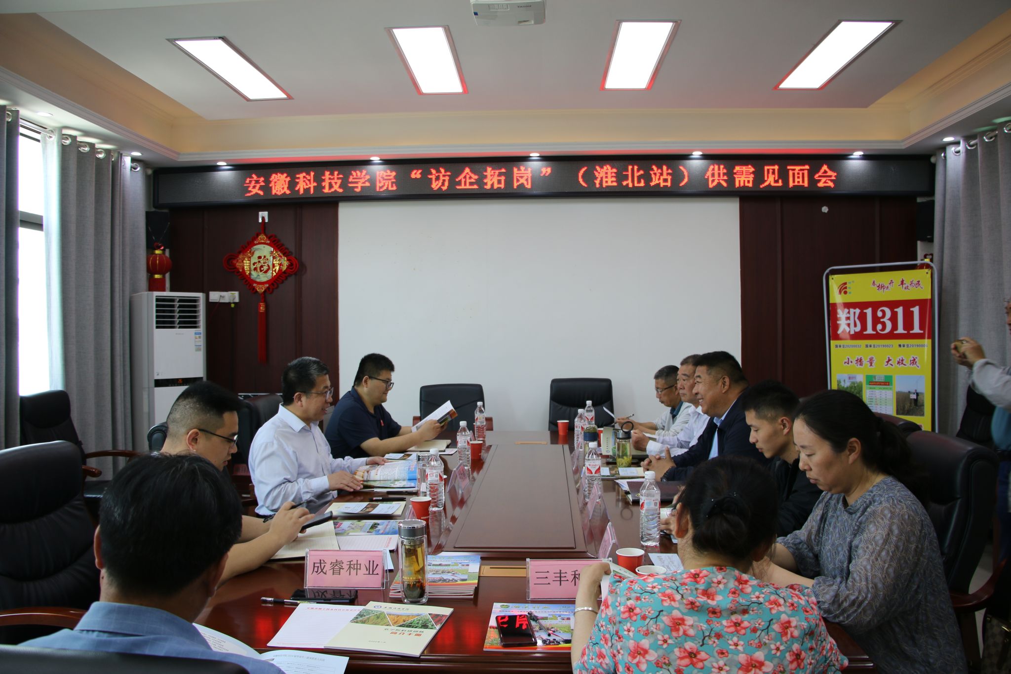 5月19日上午,何世潮一行在安徽柳丰种业科技有限责任公司进行“访企拓岗”(淮北站)供需见面会,受到了公司董事长刘超的热情接待。何世潮介绍了此次到访的目的,并简要介绍了学校办学历史、毕业生“四能人才”特点及推介了农学院“一领五农”党建品牌。李文阳简要介绍农学院师资力量、专业设置、学科建设、人才培养、校外实习实训基地、科研团队、研究生培养等情况,重点介绍了生物育种科学专业相关情况,提出了校企科研合作的方向。党政办副主任、就业联系人汪道兵介绍了学校、学院2024届毕业生相关情况,诚邀与会企业来校进行种业人才专场招聘。会上,濉溪县五铺农场、安徽隆跃农业发展有限公司、安徽永民种业有限责任公司、淮北双收种业有限公司、淮北市三丰肥业有限公司、淮北成睿种业有限公司等六家企业应邀参加见面会,参会的企业代表一一做了交流发言,介绍了企业的发展情况和人才需求。