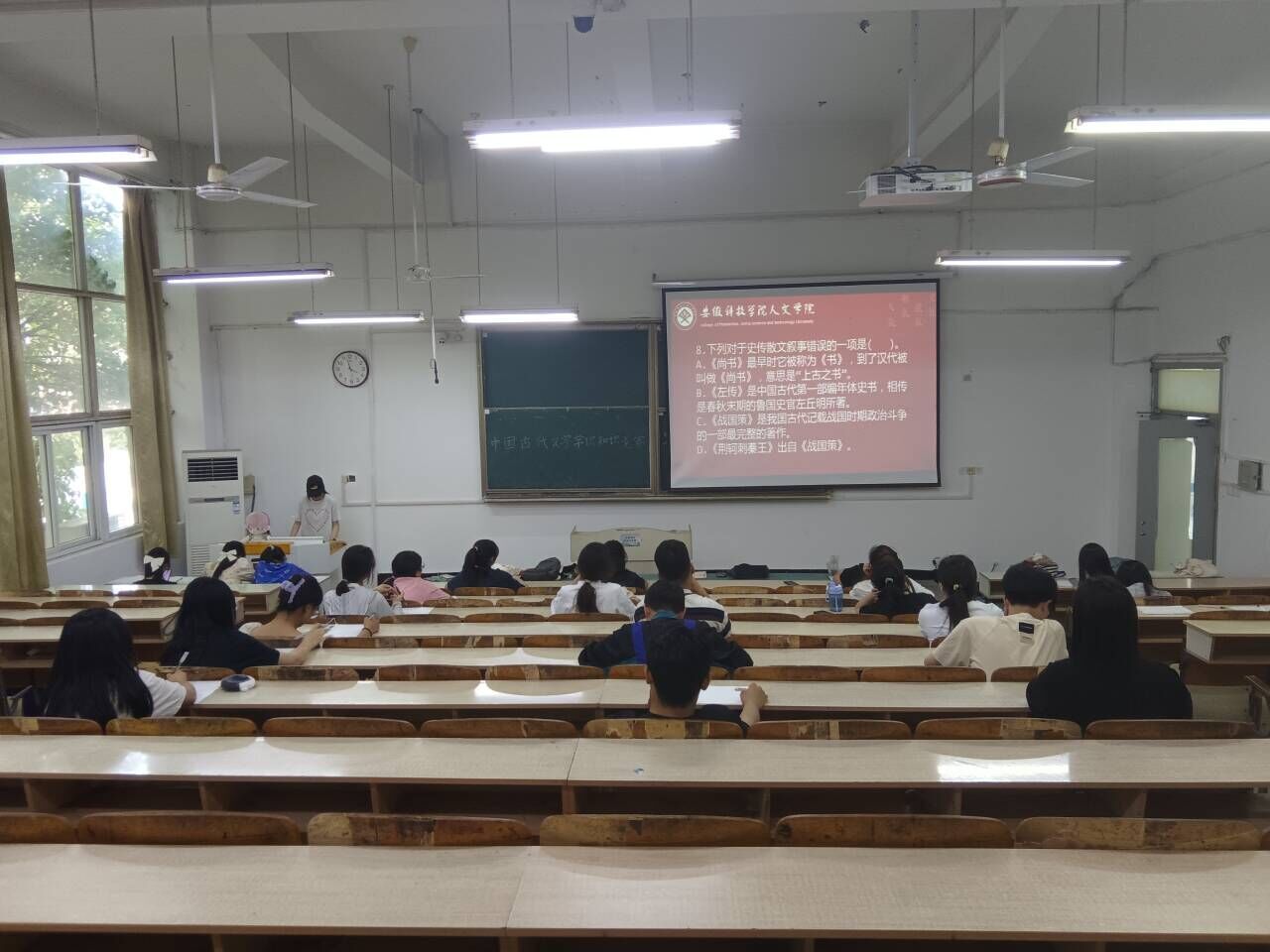 为推动我校学生深入学习文学知识,强化青年学生传承创新中华优秀传统文化的使命意识,浓厚校园人文气息,5月22日下午,人文学院在求知楼A101教室,面向23级全体学生举办中国古代文学常识知识竞赛,学院有关教师全程指导。