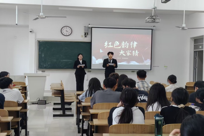 为切实增强广大学生的爱国主义情怀,激发同学们的爱国热情,丰富校园文化生活,6月5日,财经学院党史国史铭传社在致知楼C204举办“红色韵律大家猜”活动。学院有关教师全程指导。