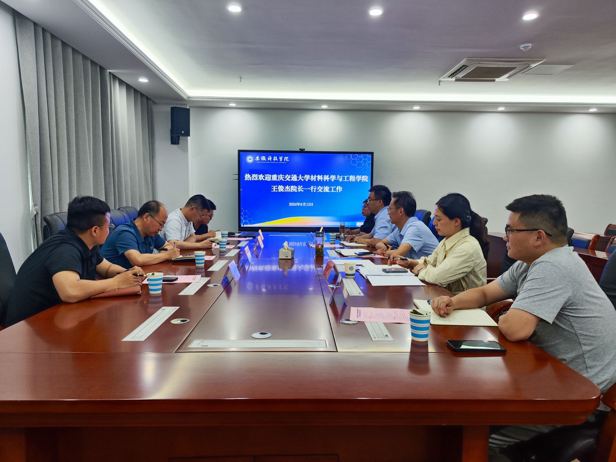 6月13日,重庆交通大学材料科学与工程学院院长王俊杰一行4人来化学与材料工程学院考察交流。学院院长李子荣、副院长惠贞贞及部分系主任参加交流。