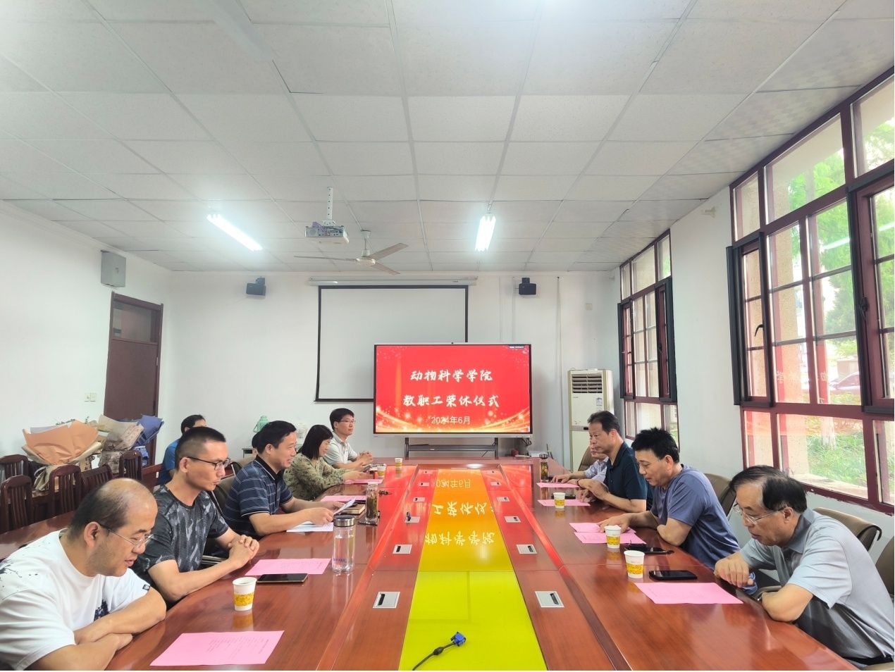 不忘春风桃李,致敬岁月芳华。为表达学院对退休教师的感恩和美好祝愿,6月24日下午,动物科学学院在学院104会议室为学院教师刘德义、胡忠泽、王立新、王明根等老师举行荣休仪式。学院党政领导、分工会主席、系室主任及教师代表参加荣休仪式,仪式由学院党委书记程斌主持。