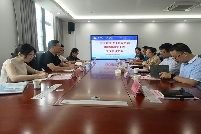 7月10日,浙江省安吉县孝源街道党工委书记沈高飞一行来校洽谈校地合作。财经学院党政领导、就业联系人参加会议。会议由学院党委副书记、纪委书记耿广汉主持。