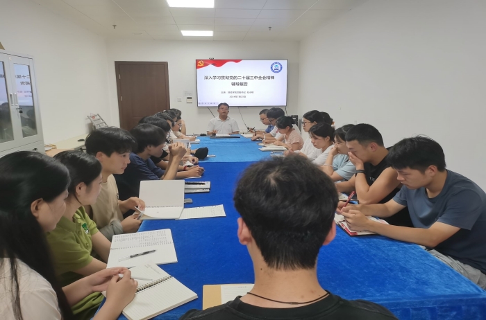 7月23日,财经学院组织专题学习会,深入学习贯彻党的二十届三中全会精神。学院党委书记杜小明作专题辅导,学院党委副书记、纪委书记耿广汉,学生党支部书记,全体暑期留校学生党员参加学习会。