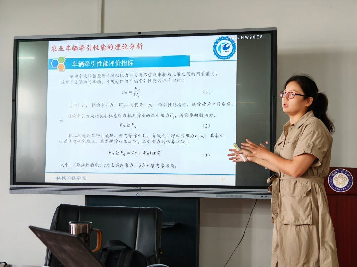 报告中,姜春霞深入探讨了课题研究的意义与方法。详细介绍了农业车辆牵引性能的理论分析、农业车辆牵引性能测试设备的研制以及土壤参数的测试、土壤-轮胎接触面土壤垂直应力分布规律的分析研究、土壤-轮胎三维接触面积的分析研究以及农业车辆牵引性能预测模型的构建与应用等。并分享了一些成功案例,展示了车辆—地面耦合系统的研究的实际应用,激发了与会者的思考与讨论。