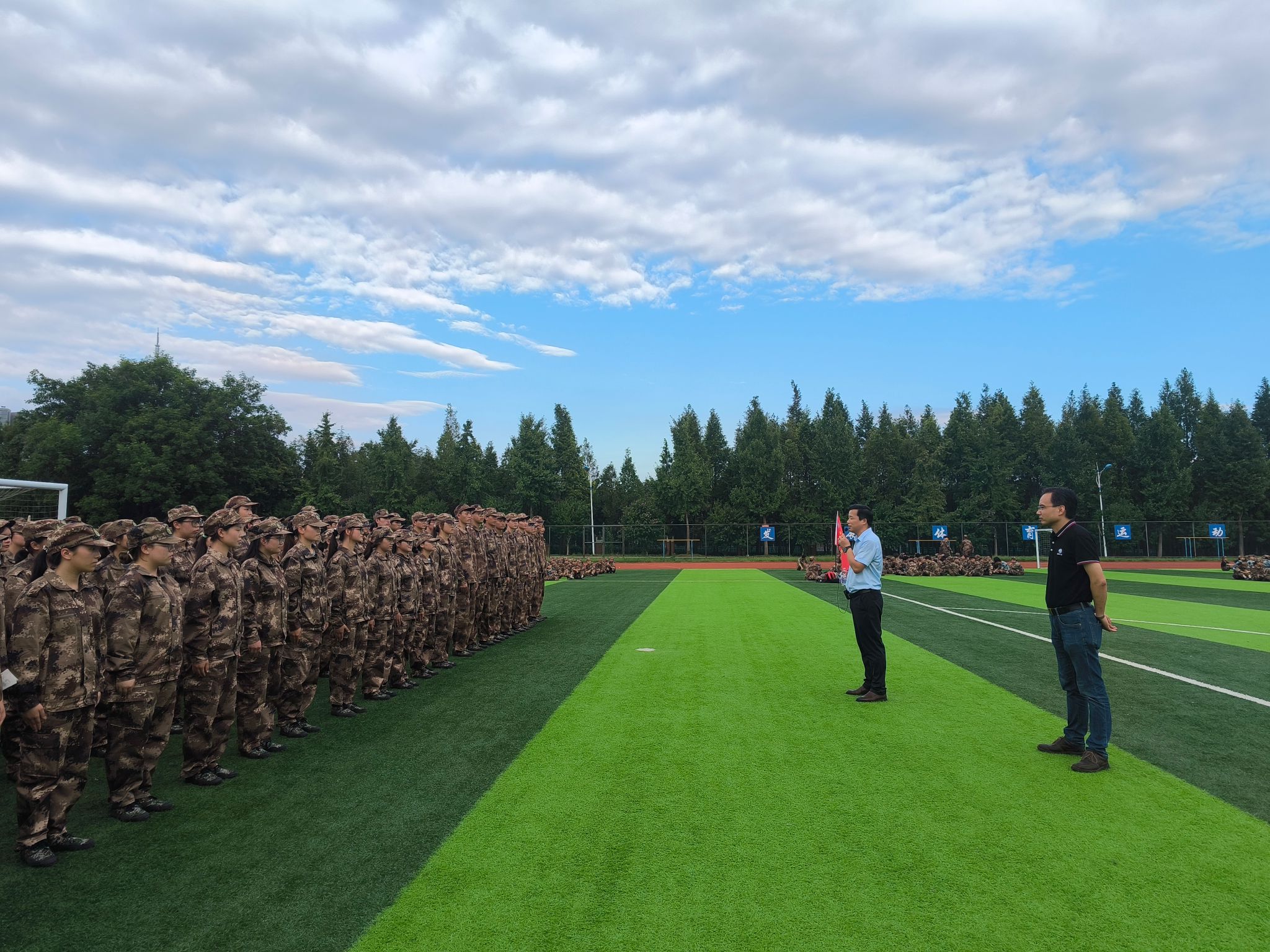 程斌代表学院向军训教官表达衷心的感谢,并赞扬了新生们在军训中的出色表现,对动科学子展现出的吃苦耐劳、勇于挑战的精神给予了充分肯定。军训是大学生活的重要一课,不仅能够锻炼同学们的体魄,更能磨砺意志,培养坚韧不拔的精神品质,他勉励参训学生要将军训中磨砺出的意志品质带进大学的学习生活中,希望大家能够珍惜这次难得的机会,在军训中收获成长,为未来的学习生活打下坚实的基础。