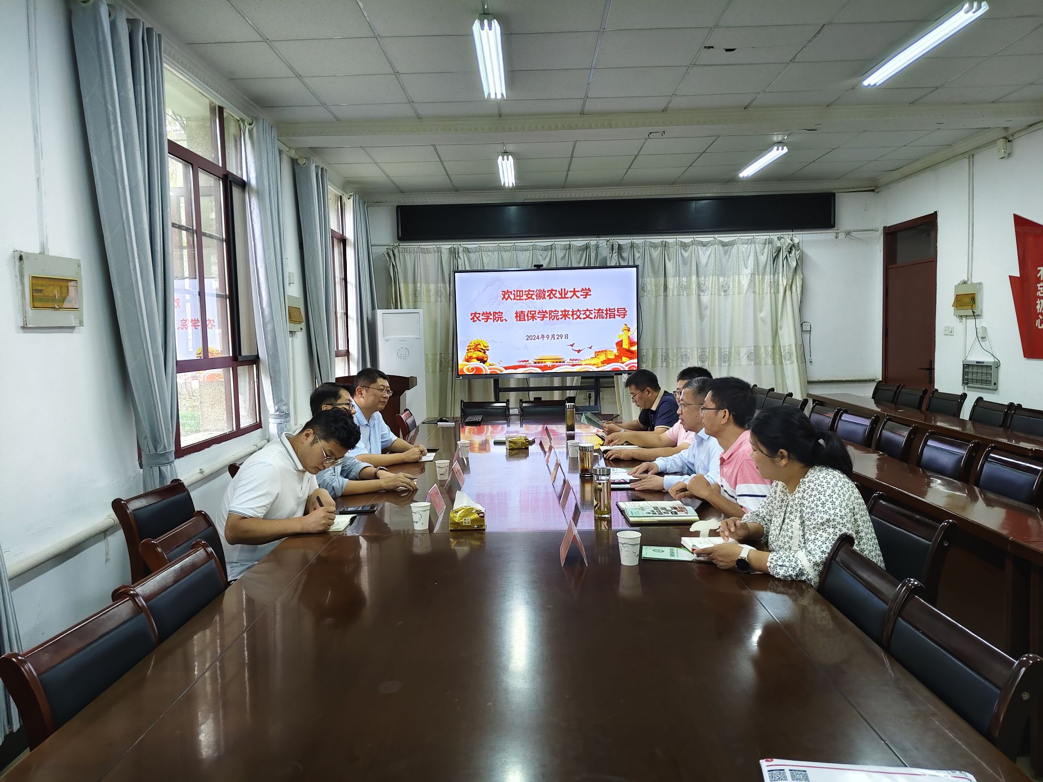 9月29日上午,安徽农业大学农学院副院长宋贺、植物保护学院副院长唐庆峰、农学院科研与研究生秘书陶帅等一行来校交流。农学院党委书记何世潮、副书记张轶辉、副院长李文阳和有关教师参加座谈交流。座谈会由何世潮主持。