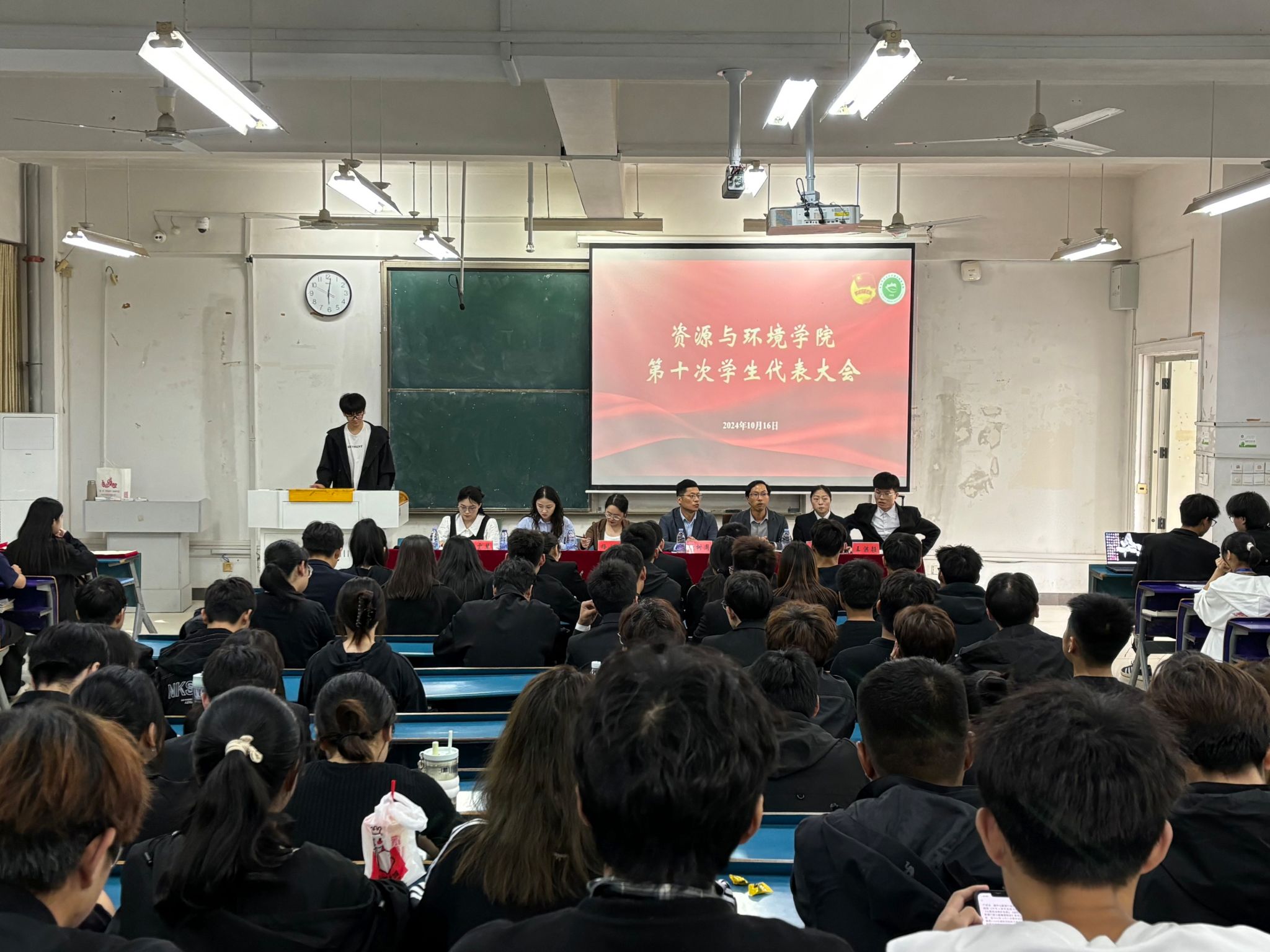 10月16日中午,资源与环境学院在新知楼B103召开第十次学生代表大会。学院党委副书记沈树周出席并讲话,学院部分师生代表参加会议,会议由副科级辅导员王丽萍主持。