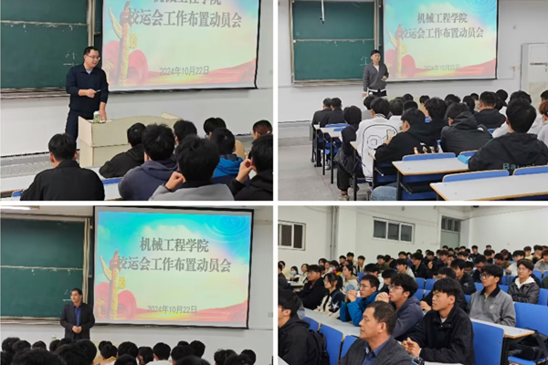 张程简要介绍了学院在校往届运动会上所取得的优秀成绩,并对同学们代表学院积极参加本届运动会的主动性和积极性给予了表扬和肯定。为做好本届运动会的参赛工作,他强调,全体运动员要珍惜机会,做好赛前训练,调整身心状态,争创佳绩;全体辅导员、学生会及志愿者等工作人员要高度重视,做好充分准备,切实为保障运动员安全顺利参赛、取得优秀成绩做好精心服务;学生会要做好组织、检录、后勤服务等工作。他鼓励全体参赛同学要奋楫争先、赓续前行,再创机械学子运动会佳绩,为学院发展增光添彩。