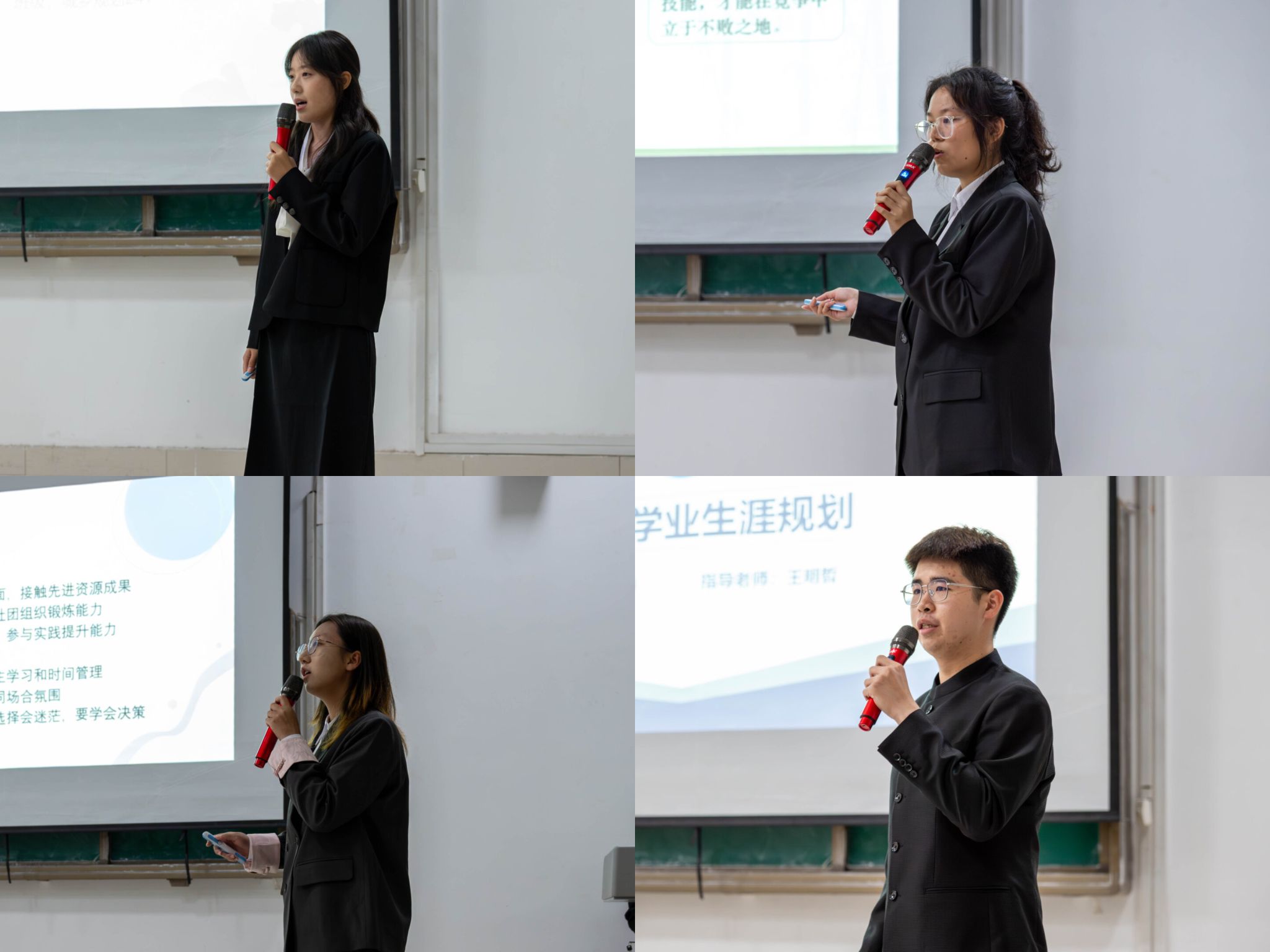 经过初赛、复赛的选拔,最终有8名同学闯进决赛。决赛环节选手以PPT演示的形式展示自己的学业生涯规划,评委通过演示情况、语言情况、基本素养、即时效果、个人特色五个方面对参赛选手进行评分。参赛选手首先从个人性格特点进行深度剖析,在此基础上制定适合自己的学业目标及计划,并对规划进行风险评估。在比赛过程中,各位选手思路清晰,语言畅达,体现了新生良好的语言表达能力和逻辑思维能力。