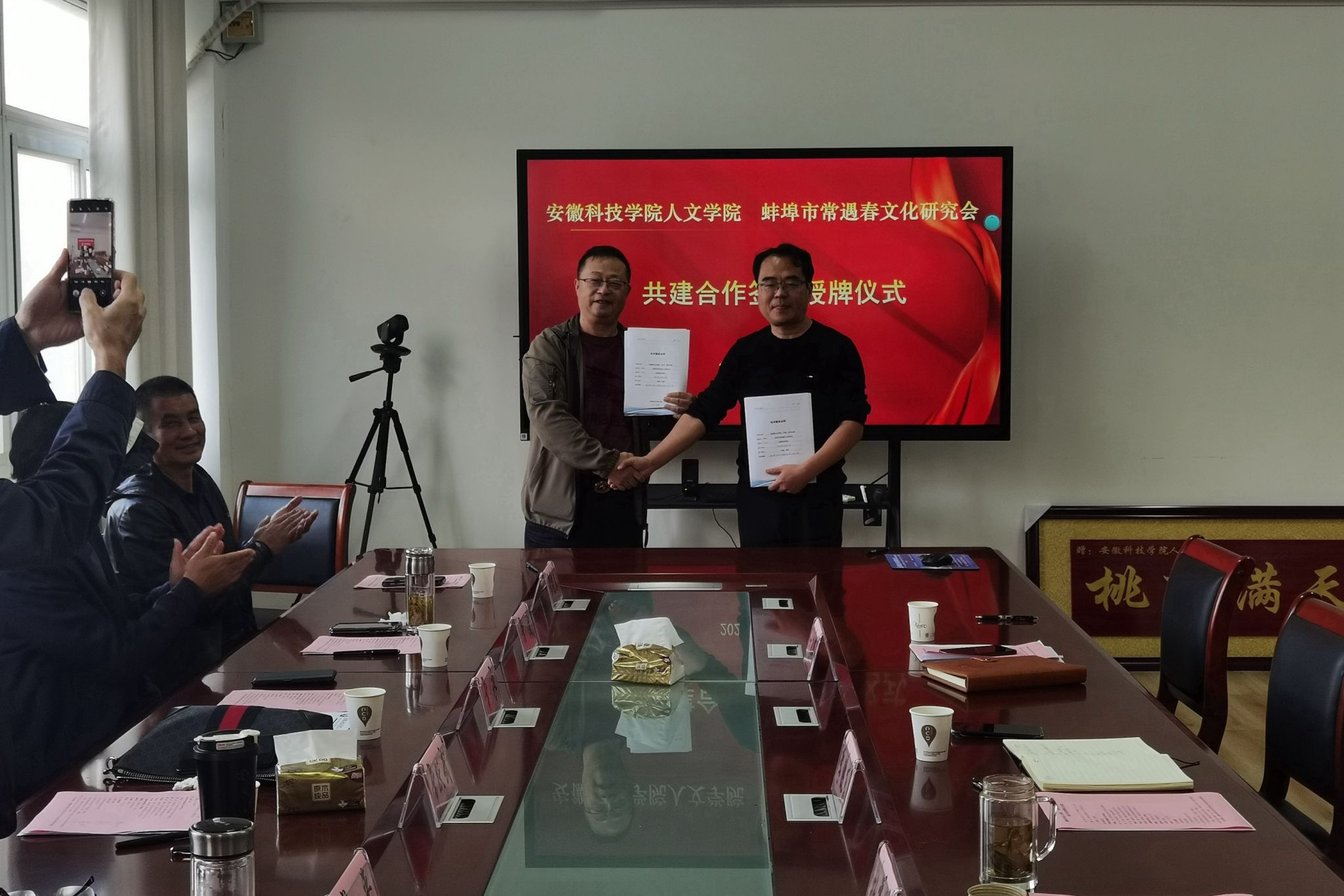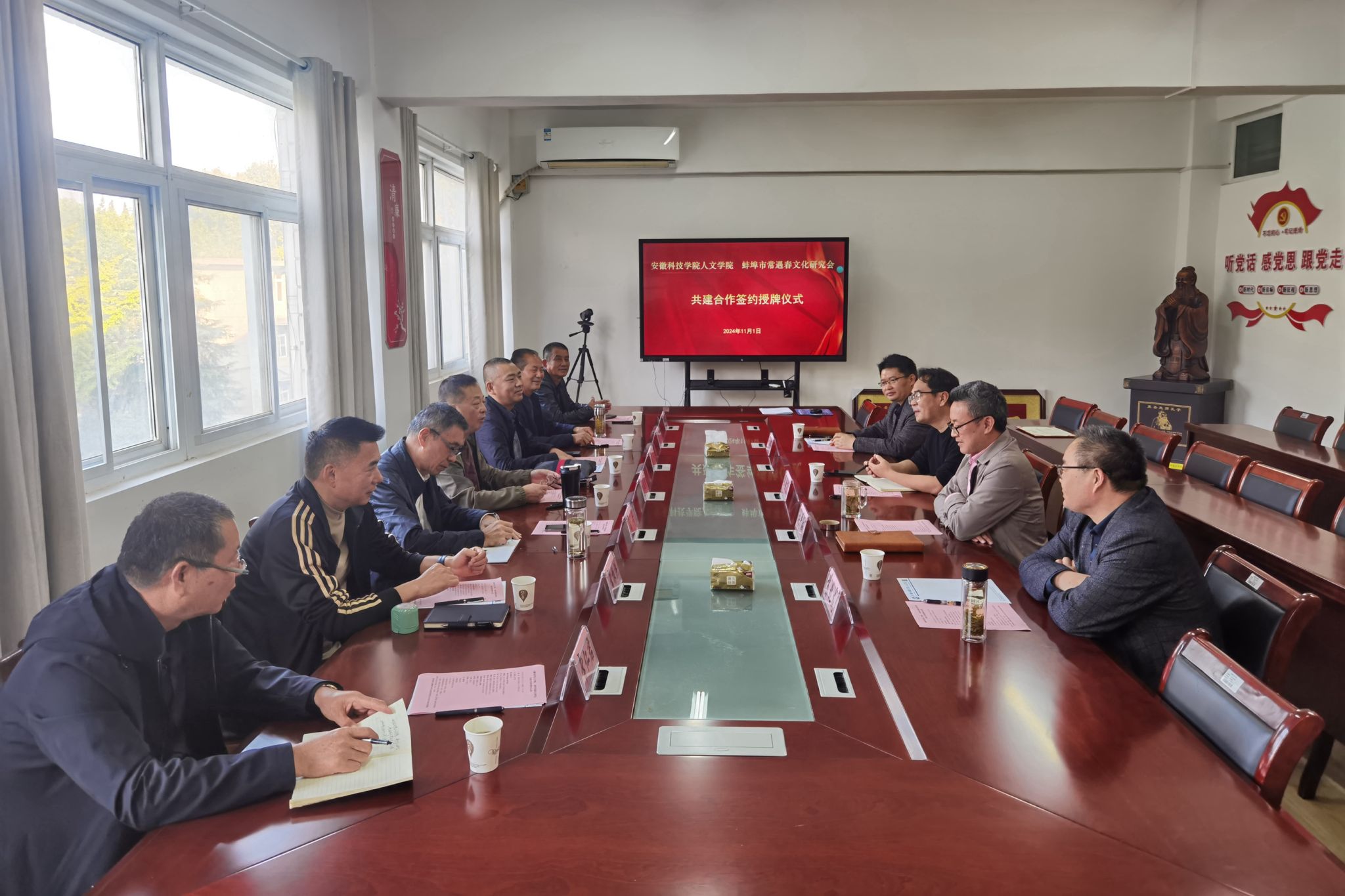 11月1日下午,蚌埠市常遇春文化研究会会长常跃武、常务副会长常永、顾问常平等一行7人来校签署共建合作协议。人文学院党委副书记、院长李晓东,正处级组织员张严政,副院长牛永辉,中文系主任苏兆龙出席仪式。仪式由张严政主持。