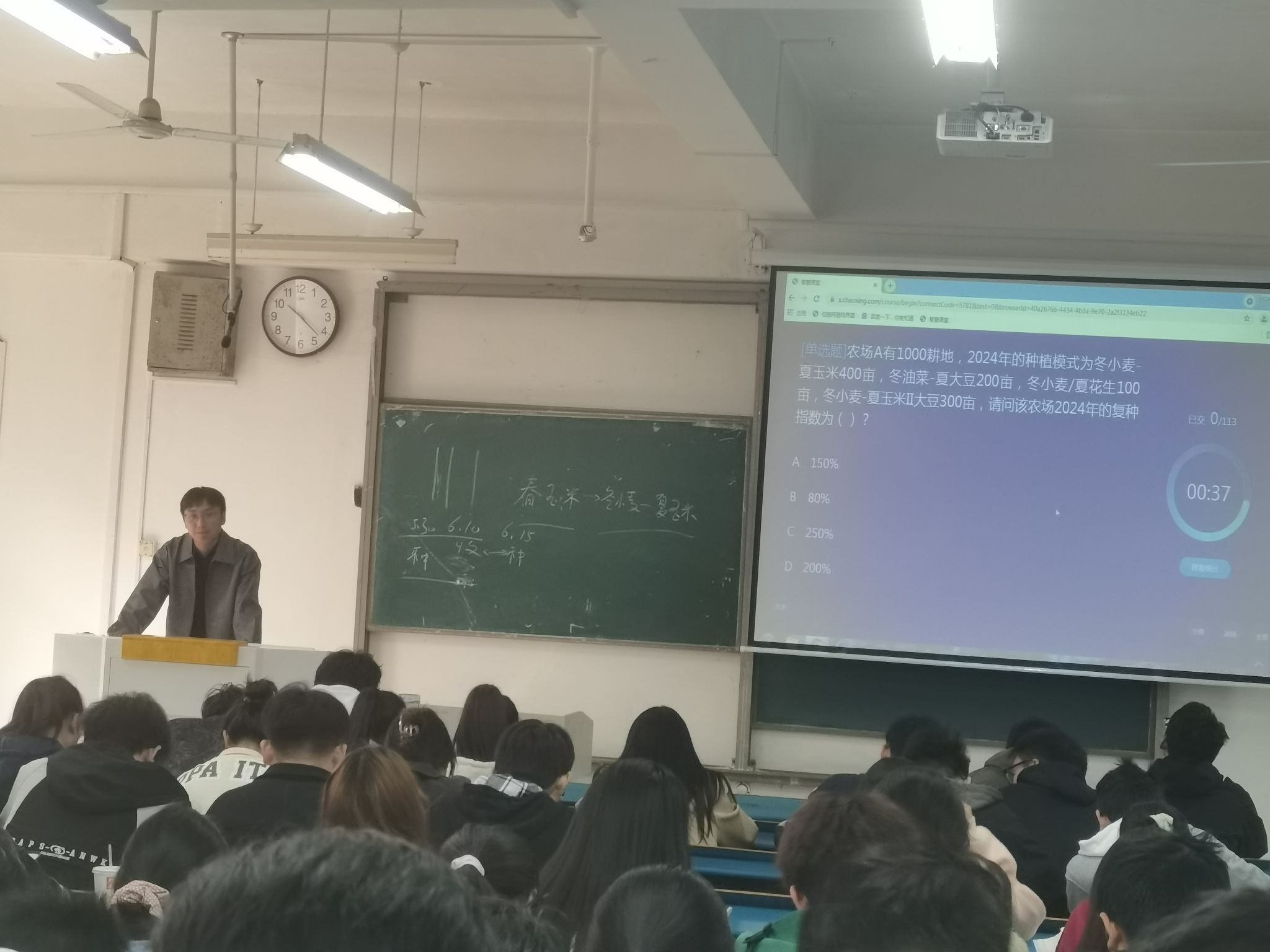 本次听评课活动中,杨雨豪的授课内容为《耕作学》第三章“复种”,在课堂教学过程中,杨雨豪充分运用了数字化教学手段,在超星学习通平台开展教学活动,授课内容条理清晰、重点明确,学生听讲认真、秩序良好、气氛活跃。